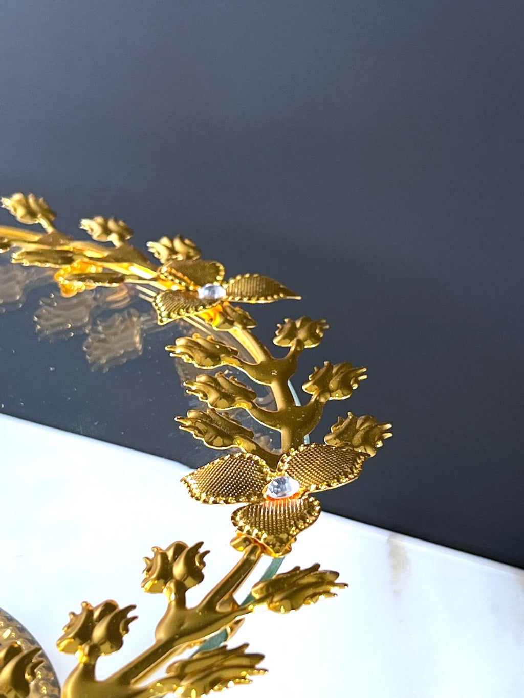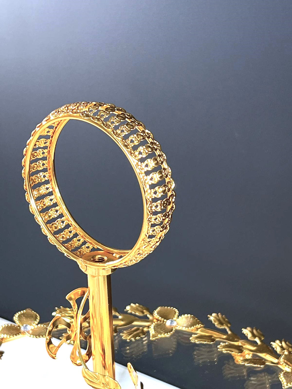 TREND HOME Présentoir à gâteau en verre et ornements dorés
