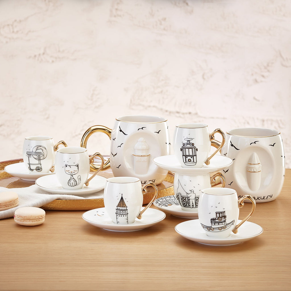 KARACA GALATA Set de tasses à café 12 pièces 6 personnes