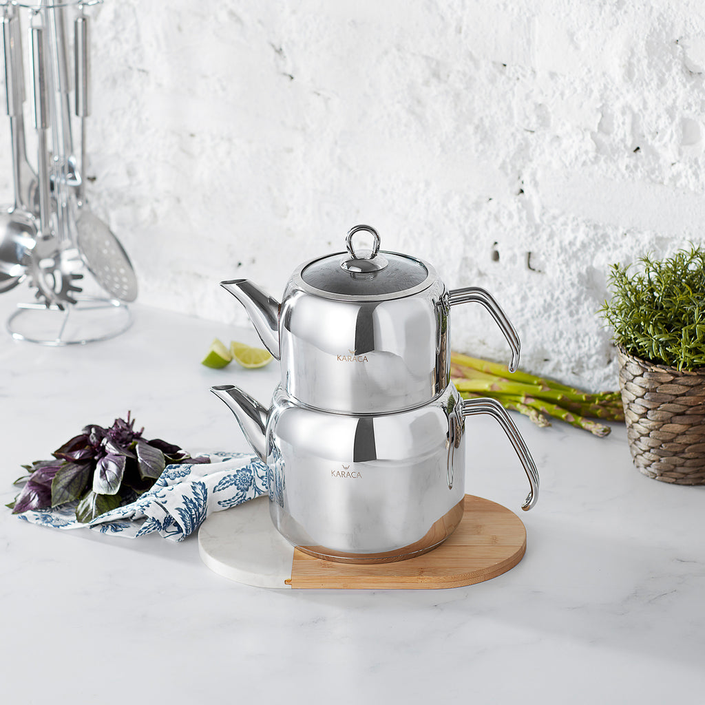 Grâce à cette théière à double étage, vous pourrez servir du thé turc préparé traditionnellement à votre famille au quotidien ou offrir à vos invités. Avec ses poignées ergonomiques qui empêche de vous brûler les mains vous pourrez faire votre service sans crainte. Une conception spéciale emprisonne la chaleur à l'intérieur de la théière et garde votre thé au chaud pendant une longue période.