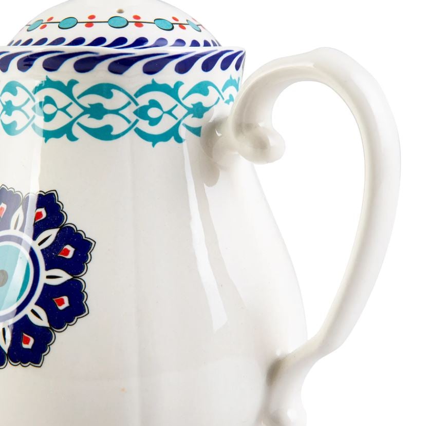 DescriptionCette magnifique théière en porcelaine reflète toute l’histoire et les motifs de l’Anatolie. Son design tendance et ses dessins raffinés la rende unique en son genre. Avec la théière Karaca mai Selçuklu vous allez adorer servir le thé préparé traditionnellement à vos convives. Pour compléter votre ensemble, profitez de notre large sélection de verres à thé dans la catégorie : « verres, carafes».