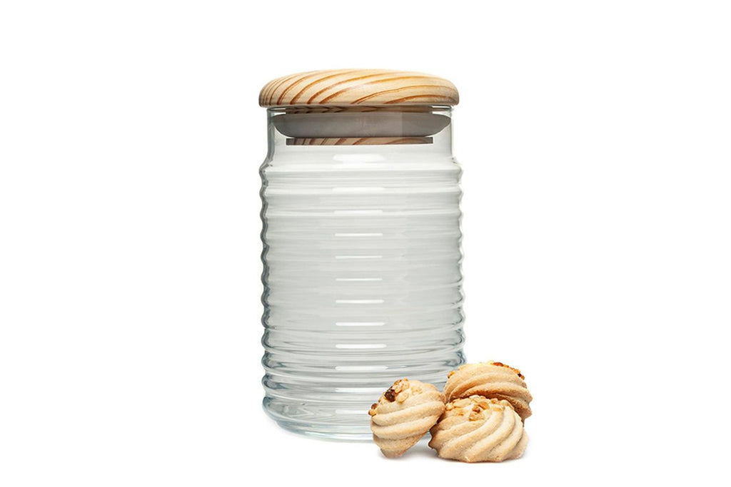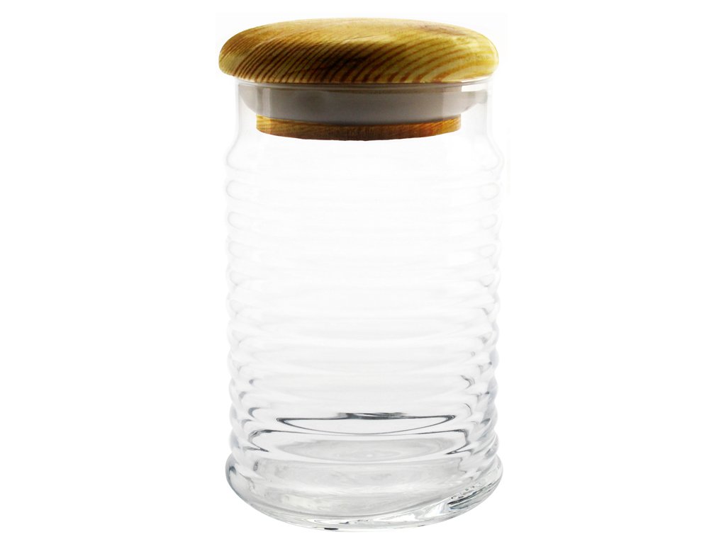 PAŞABAHÇE BABYLON Bocal en verre avec couvercle en bois