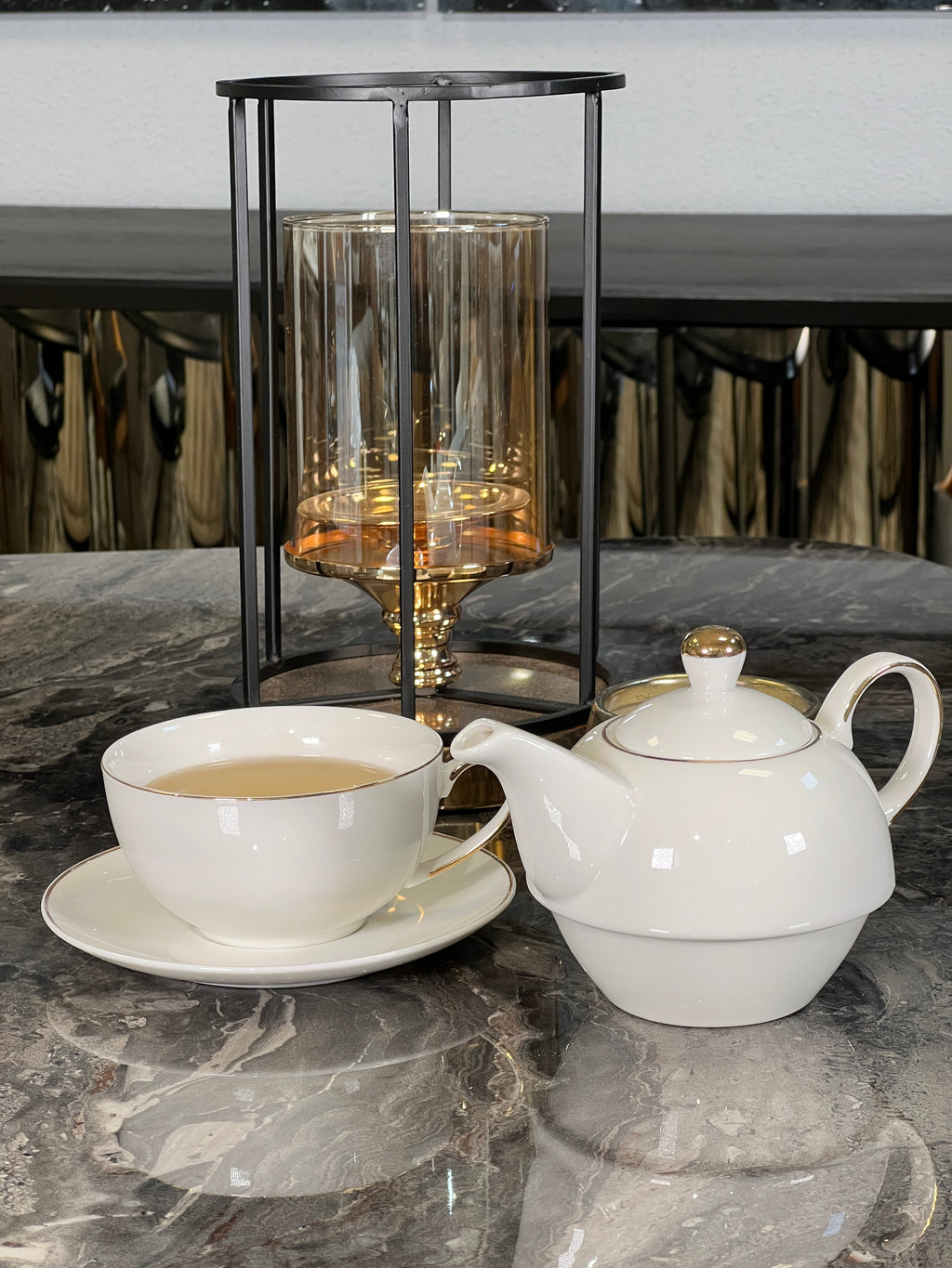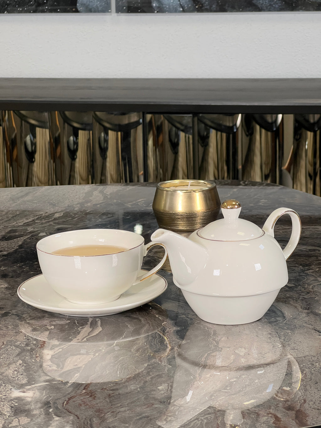 TREND HOME COLLECTION Set de théière en porcelaine et tasse avec liseré doré 3 pièces