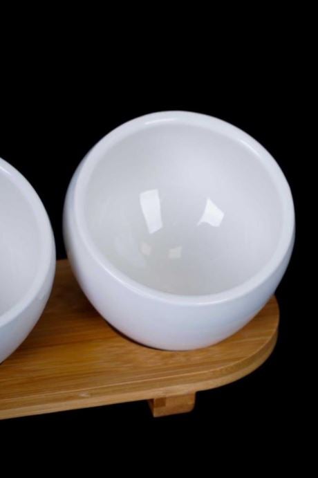 ACAR PURE Plateau apéritif en bambou avec 3 bols en porcelaine blanche