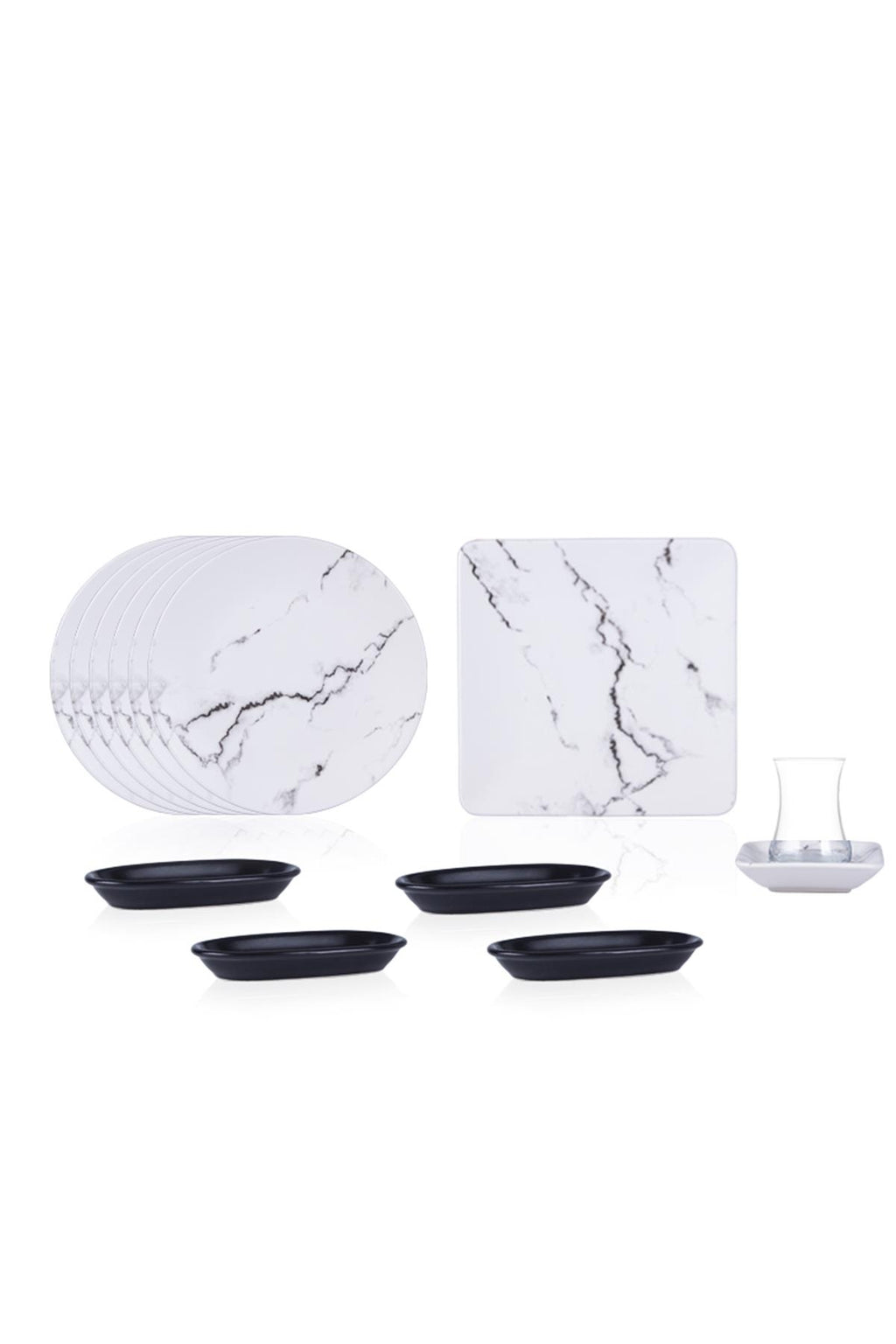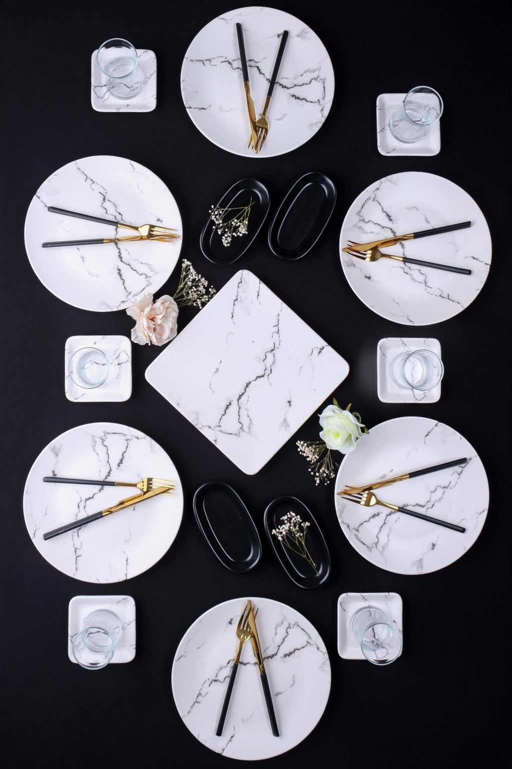 Conçu pour ajouter de l'élégance à vos présentations, cet ensemble de petit-déjeuner Majori 23 pièces sera apprécié par tous avec un petit-déjeuner agréable et sucrée. Avec sa texture mate et lisse, ses motifs marbrés, ce service est l'indispensable pour les petits déjeuners. Vos invités et vos proches se sentiront précieux avec l'ensemble de petit-déjeuner en céramique Majori de 23 pièces. Les couleurs et les formes créeront un style moderne et noble et s'associeront à l'harmonie de chaque maison et table de la manière la plus magnifique. Ceux qui accordent autant d'importance à la santé qu'à la décoration, avec sa structure en céramique saine, vous pouvez l'utiliser en toute sérénité et le laver au lave-vaisselle avec un réglage délicat.