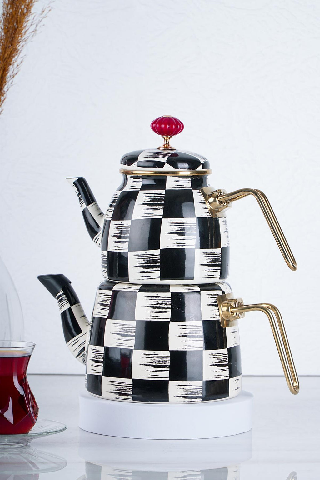 ACAR QUALITA KING Théière en émail motif noir et blanc Induction