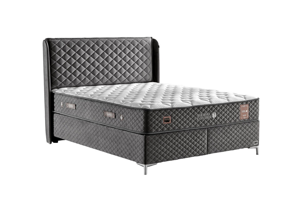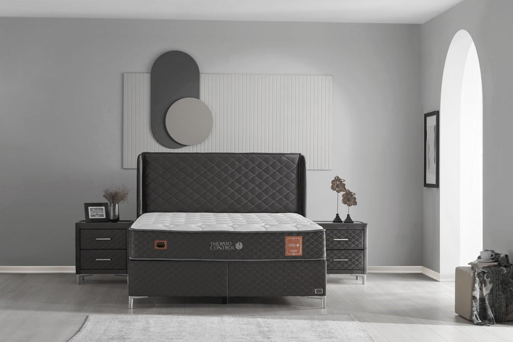 BAMBI THERMO CONTROL Lit coffre, Tête de lit et Matelas à tissu thermo-régulateur : Le matelas Thermo Control a la particularité de fournir une régulation de la chaleur grâce à sa fonction de réglage de la température dans les deux sens. De cette façon, il aide à maintenir la température idéale du corps. La température corporelle idéale fournie tout au long de la nuit augmente le confort de l'utilisateur et la qualité du sommeil.