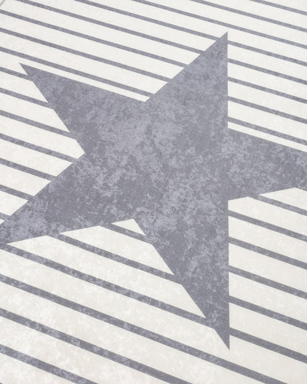 BELLA TAPIS Motif Rayé Etoile Gris Tapis lavable antidérapant et antibactérien