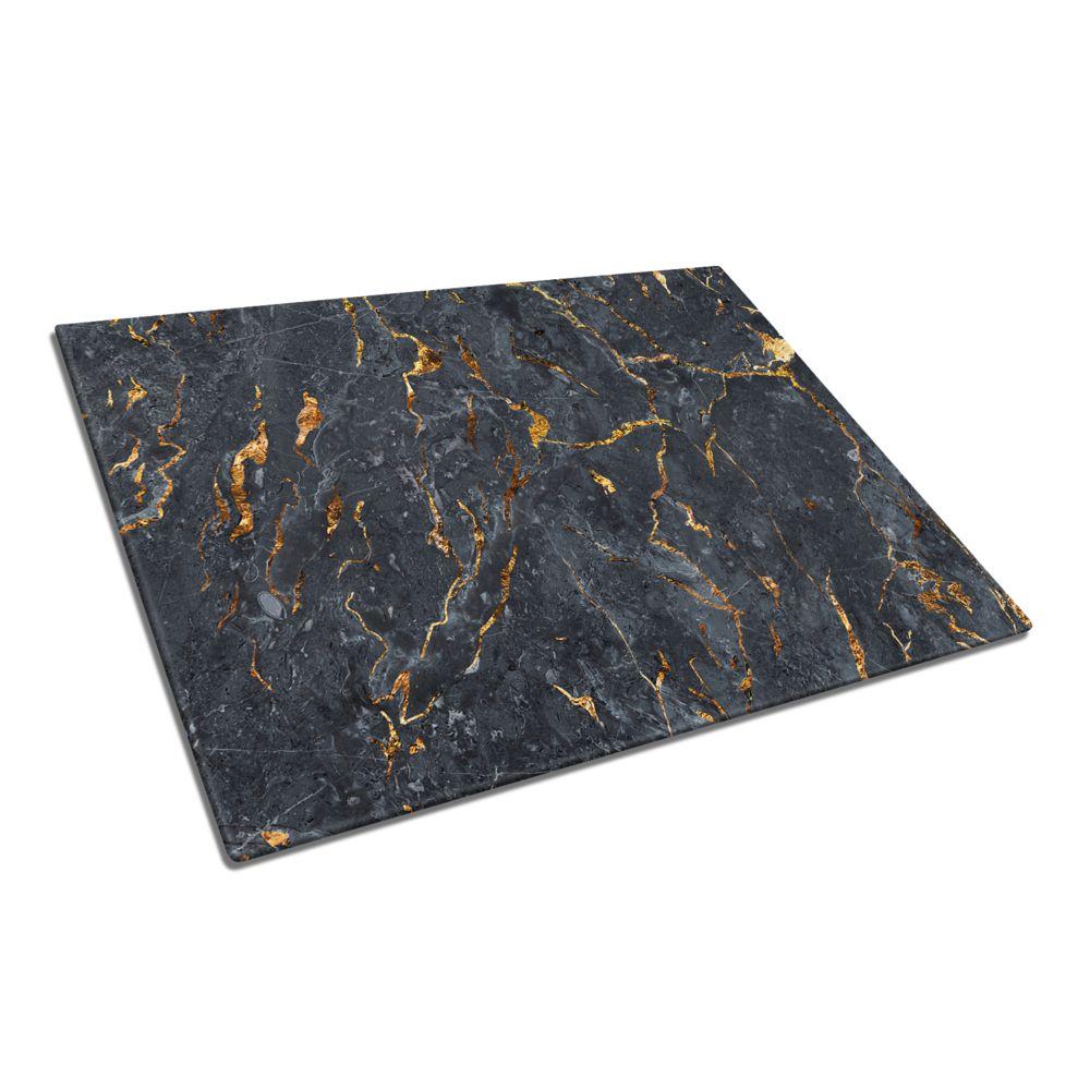 BELLART - Effet Marbre Noir et Or - Planche à découper en verre à impression UV 35x25 cm