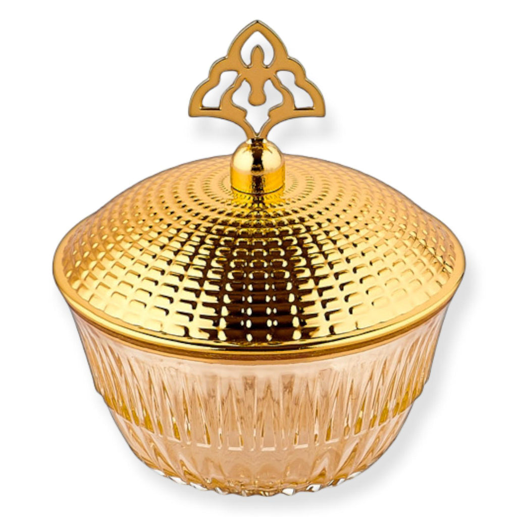 Bol à bonbons doré en verre avec couvercle en métal - motif tatouage