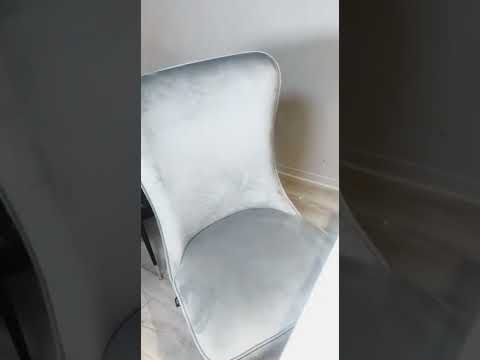 Chaise design moderne dossier capitonné en velours gris clair avec piètement en acier inoxydable collection Scarlette avec un confort parfait