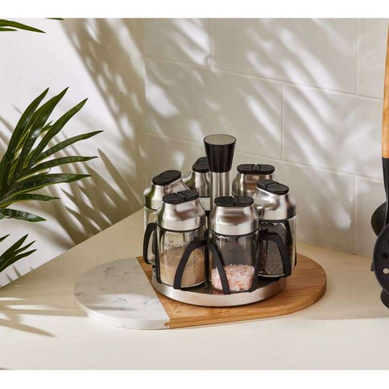KARACA DIMPLE STEEL Set de 6 pots à épices avec support