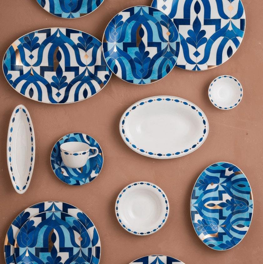 Voici le miracle de l'océan, la perle vient à vos tables avec Karaca Fine Pearl. Karaca Azur Fine Pearl est un ensemble de service de table inspiré du village des pêcheurs d'Essaouira, sur la côte du Maroc. Bien qu'Essaouira soit une ville cosmopolite où coexistent de nombreuses cultures différentes, elle est connue comme l'une des plus belles villes du Maroc située sur le front de mer. Le Maroc continue d'être le centre d'attention en tant qu'attraction exotique avec des couleurs, des parfums, une beauté naturelle, des produits frais, des artisans et des rues étroites et avec une couleur propre à chaque ville. A Essaouira, le charme du blanc et du bleu est visible sous les couleurs orange et jaune, où le soleil Marocain prend des teintes dorées. Ce service de table offre une note artistique pour refléter l'élégance des tables et combine design moderne et inspiration artisanale. Il est couronné d'une touche d'exotisme équilibrée par une géométrie contemporaine.