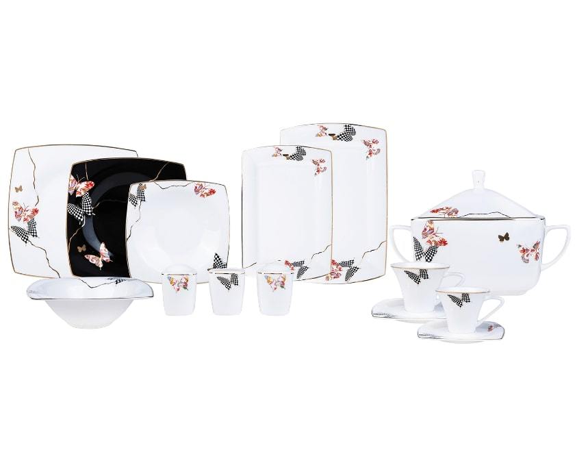 L’ensemble de service de table Karaca Fine Pearl Unique impressionne au premier coup d’œil. Vous serez émerveillé quant à l'harmonie parfaite de la porcelaine aux couleurs noire et blanche. Avec ses touches dorées et ses motifs papillons aux couleurs tendres, l’ensemble séduira vos convives en leur offrant vos plats délicieux. C'est aussi un choix idéal pour les nouveaux mariés.