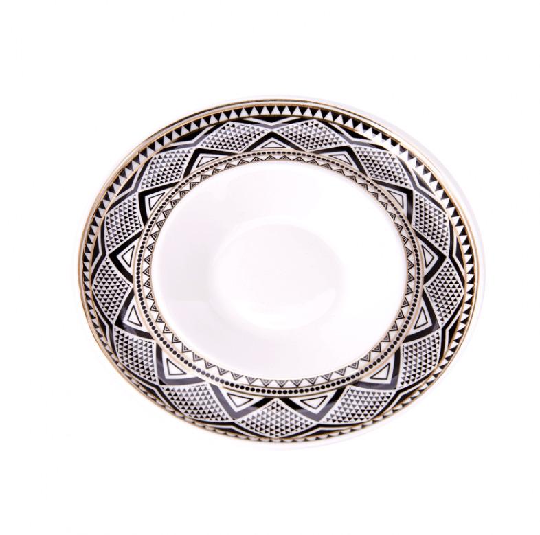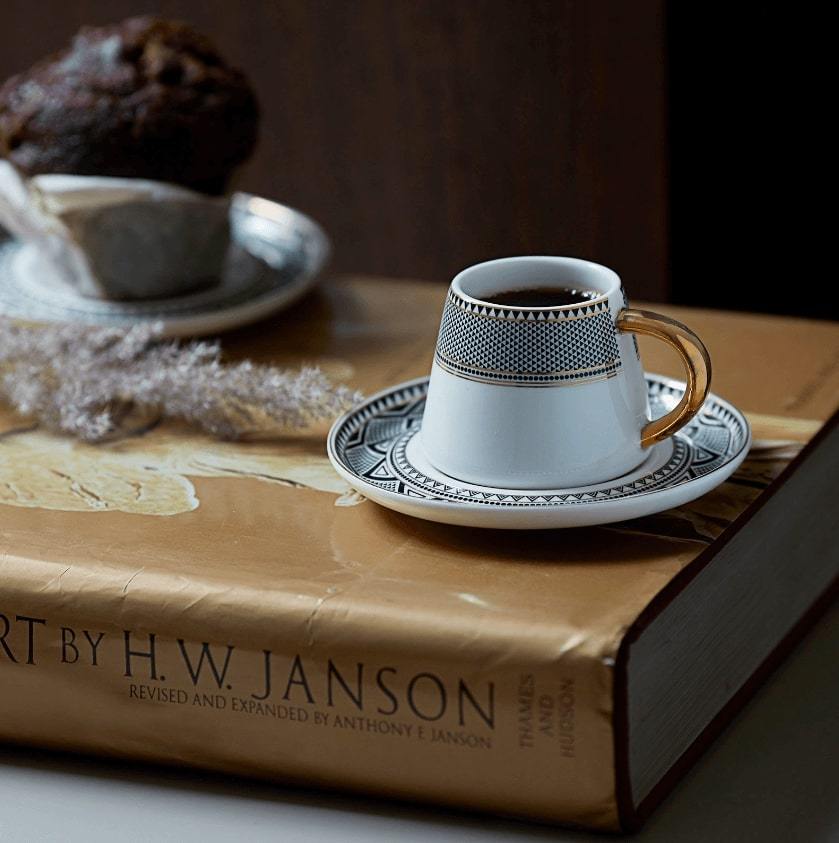 Pour un plaisir visuel tout comme gustatif, vous pouvez servir votre café avec cet ensemble de tasses à café Karaca Globe pour 6 personnes. La présentation du café compte tout autant que sa qualité pour un plaisir au summum. Les motifs de forme géométrique de couleur noire et dorée sur porcelaine blanche ajoutent une élégance à l'ensemble. L'anse dorée et les soucoupes aux mêmes motifs que les tasses sont conçues pour garder l'harmonie de l'ensemble .