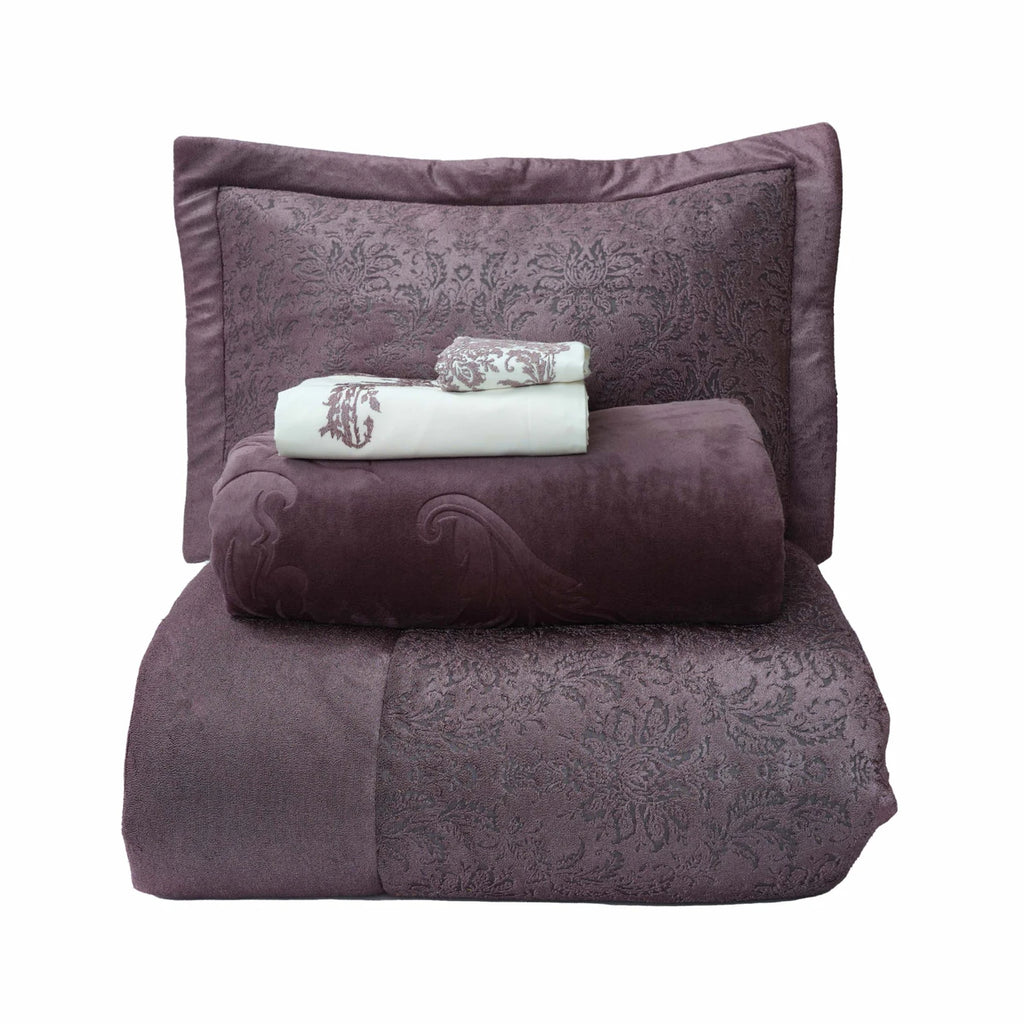 KARACA HOME BENJAMIN Ensemble de linge de lit complet avec couvre-lit 10 pièces pourpre