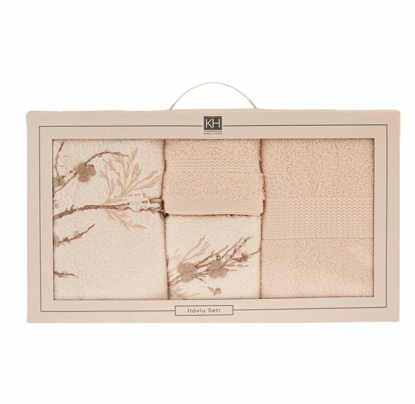 KARACA HOME LENNY Lot de 4 serviettes brodées beige-blanc cassé