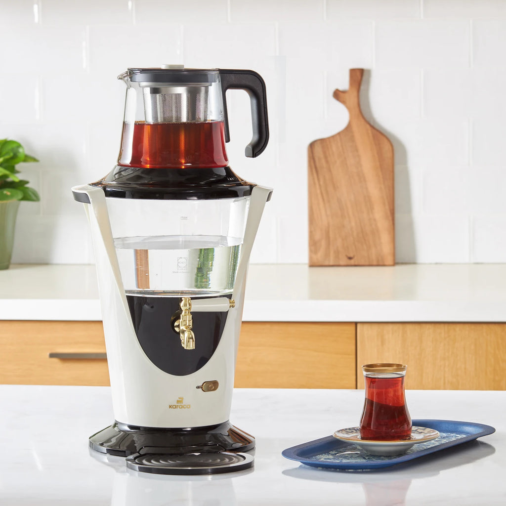 La boisson chaude la plus consommée dans le monde est bien le thé. Les vertus du thé noir pour la santé sont nombreuses, il n'est pas étonnant que cette boisson fasse de plus en plus d'adeptes ! Si une ou deux tasses ne vous suffissent pas ou si vous recevez souvent des invités, Karaca Retro théière électrique vous satisfera parfaitement.