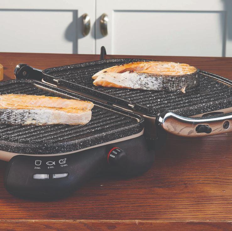 Avec Korkmaz Castron, vous pouvez préparer de délicieux toasts ou bien cuire la viande ou le poisson grâce à sa fonction grill. Grâce à son revêtement antiadhésif granité, vous cuisinez plus sainement vos aliments sans huile et sans vous fatiguer. Korkmaz Castron ne consomme que l'énergie nécessaire grâce à son contrôle automatique de la température. Les grilles peuvent être facilement démontées et nettoyées. Il dispose plusieurs fonctions de cuisson et des bacs de récupération amovibles. Préparez ainsi facilement vos toasts et sandwich ou savourez vos grillades grâce à Korkmaz Castron !