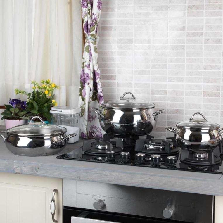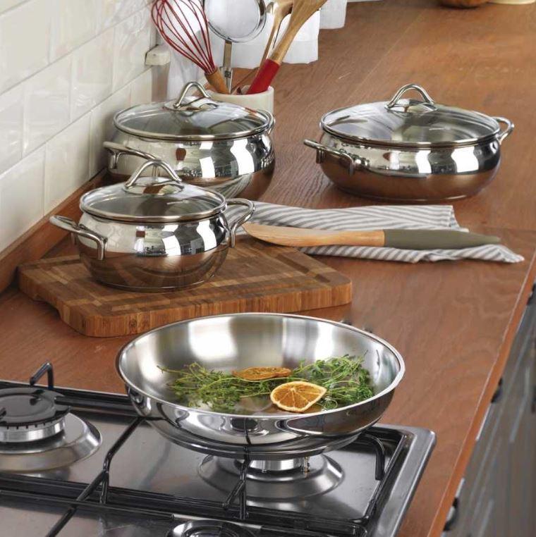 La batterie de cuisine KORKMAZ Tombik fournit une conduction thermique uniforme grâce au système de fond Solar Base. Ainsi vous gagnez aussi en temps et en énergie. La surface extérieure des casseroles est soigneusement polie et conserve sa brillance. Avec ses poignées ergonomiques et thermo-isolantes, vous pourrez toucher les poignées sans crainte de vous brûler. Cet ensemble est compatible tous feux dont induction et passe au lave-vaisselle.