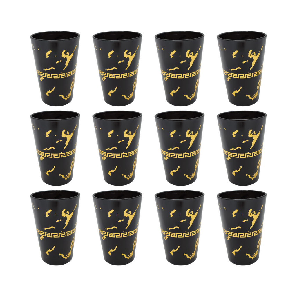 Lot de 12 verres à thé noir avec liseré doré fin