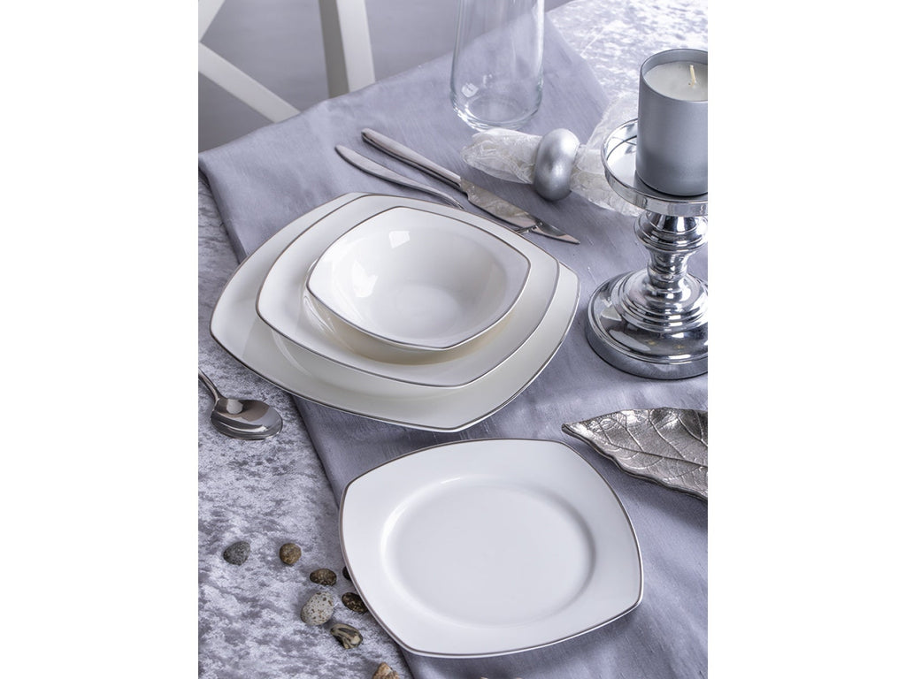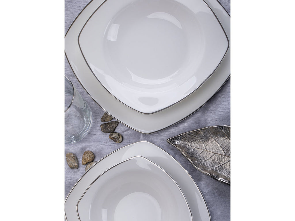 Cet ensemble de vaisselle 24 pièces Taç Spinosa est une série spéciale qui couronnera vos tables avec sa blancheur pure et ses liserés argentés.
