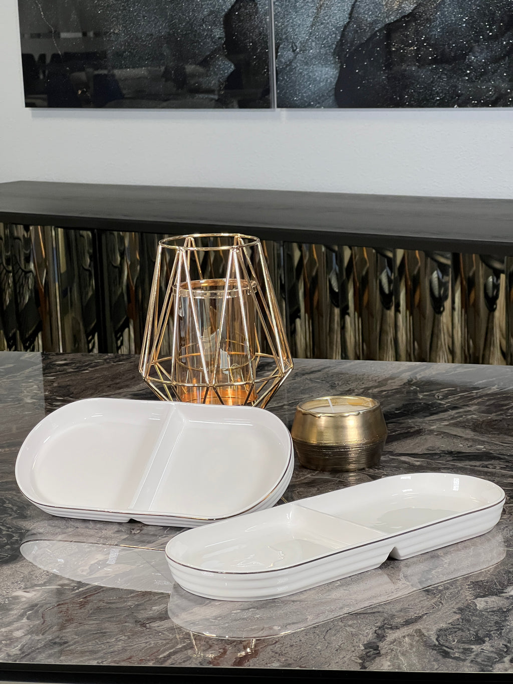 TREND HOME Lot de 2 assiettes ovales à 2 compartiments liseré doré