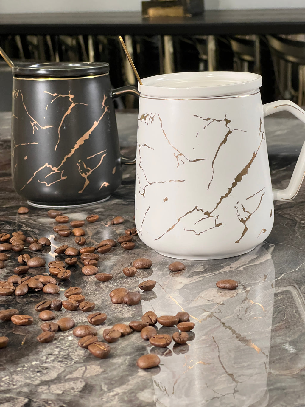 TREND HOME COLLECTION Lot de 2 Mugs BLANC et NOIR motif marbré doré 6 pièces