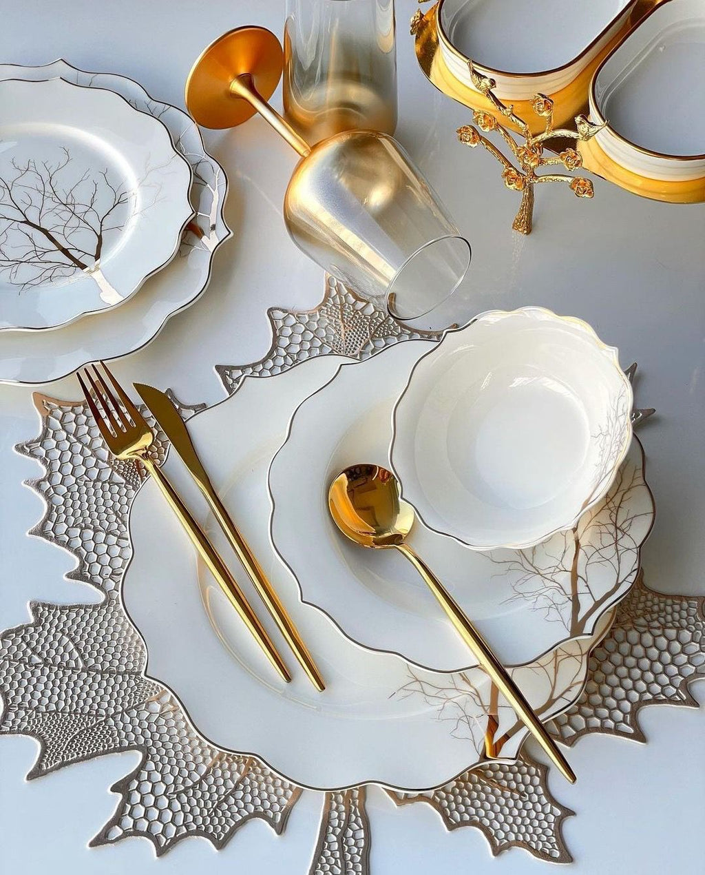 ZELLERFELD BLOOM Service de table motif arbre doré 27 pièces 6 personnes