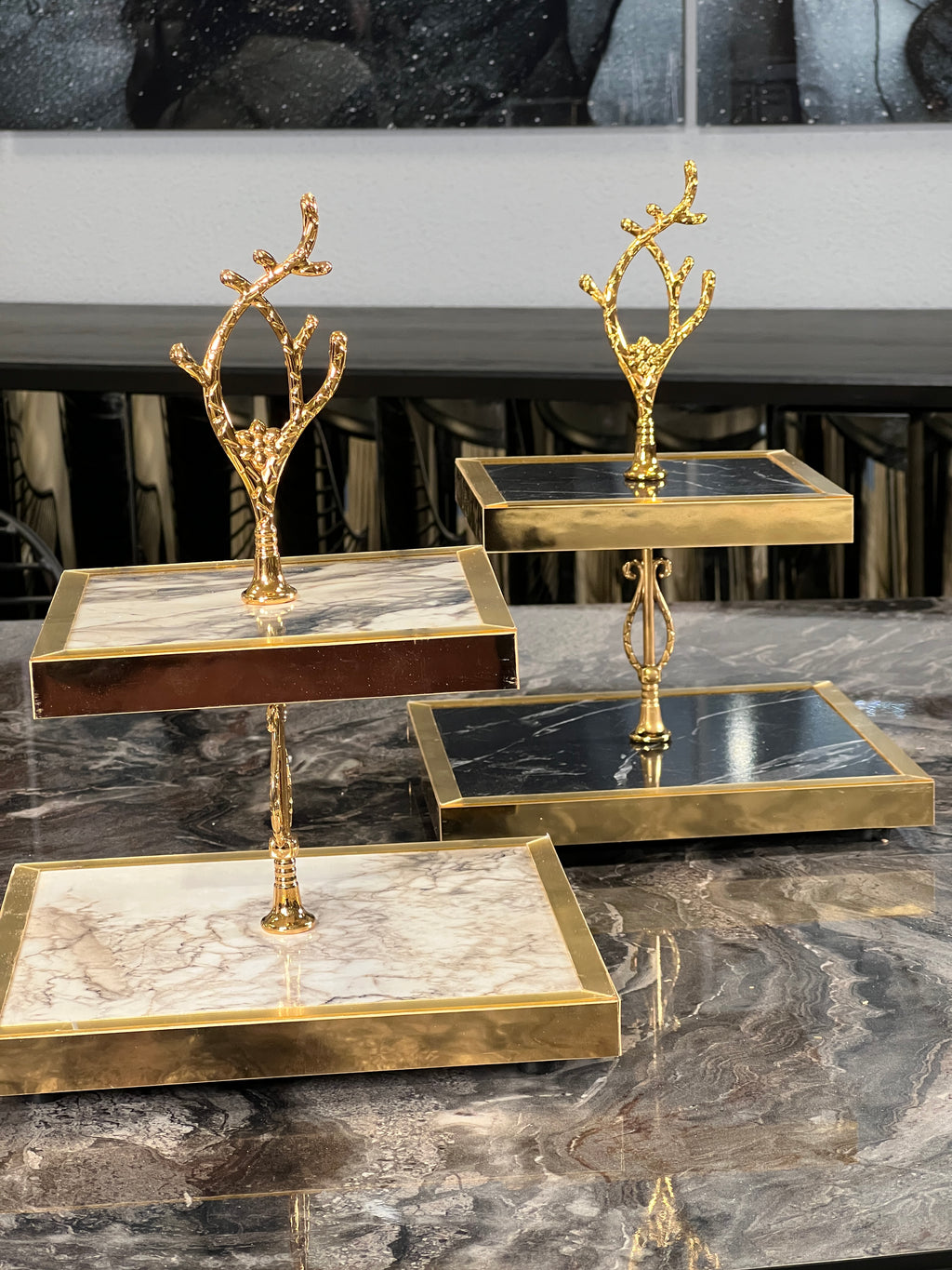 ZEYVE Présentoir à gâteau 2 étages motif marbré blanc doré